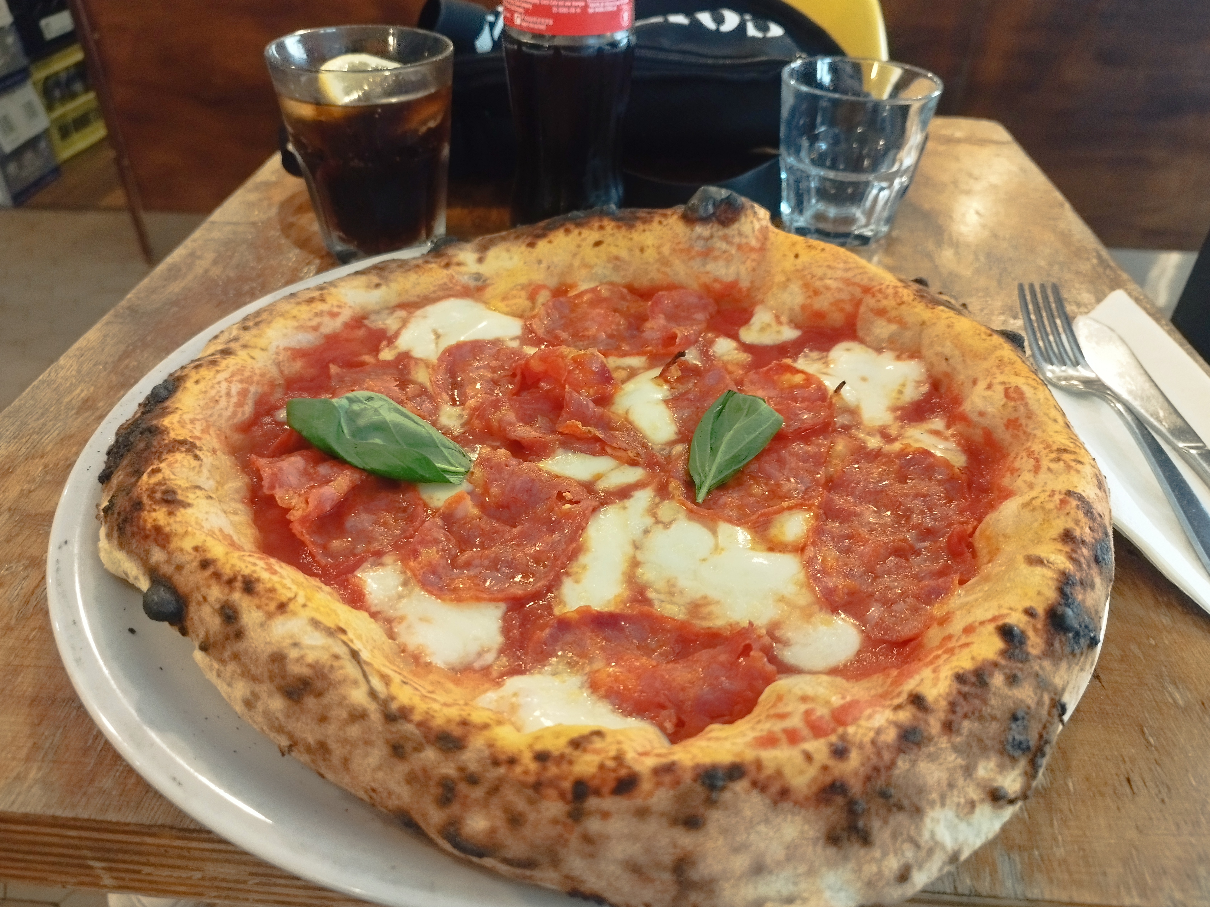 Partaite pizza napolitaine chez Mangioni ! Une famille italienne adorable pour un service de qualité, chaleureux et des produits authentiques. Les yeux fermés !
