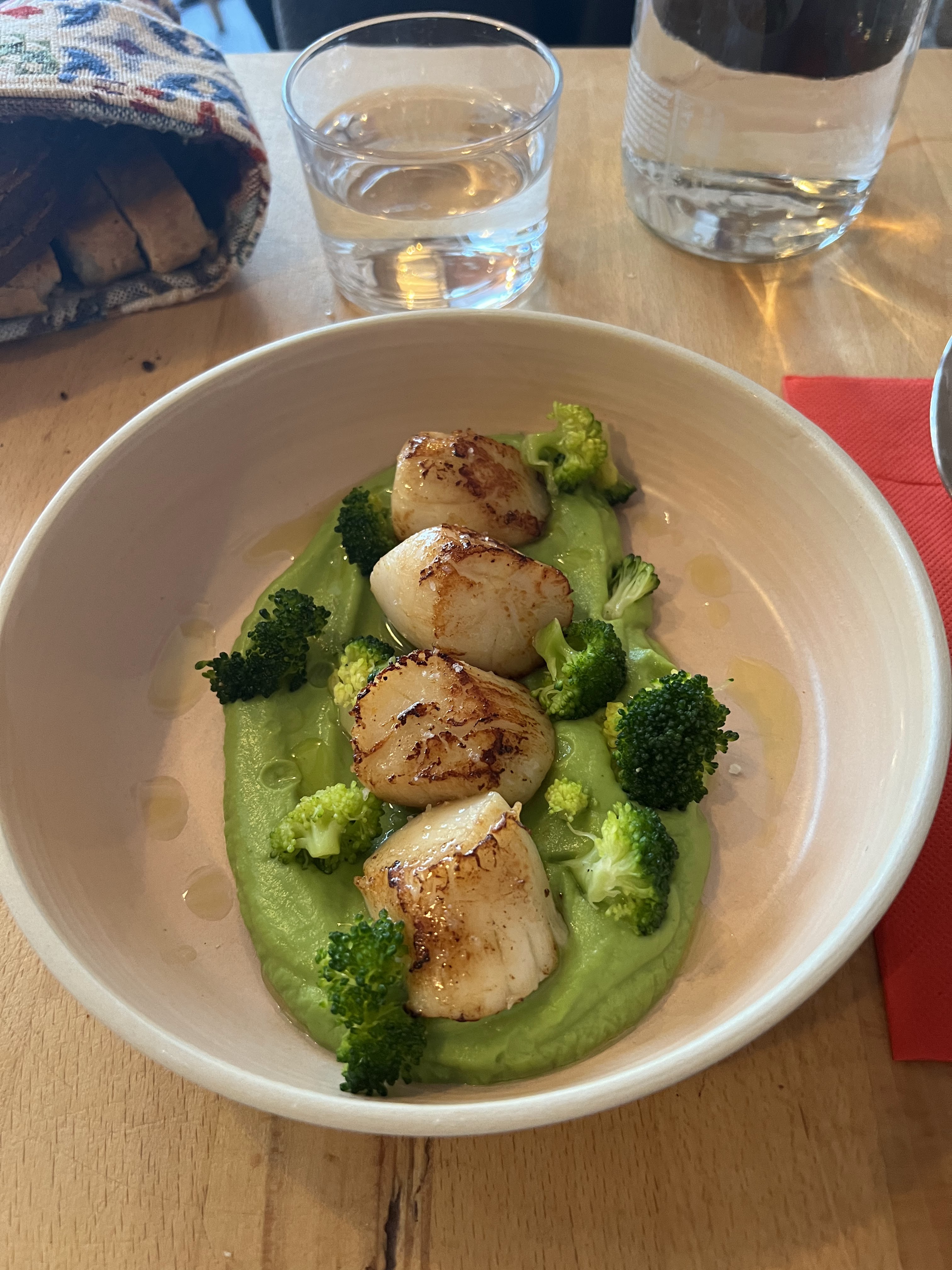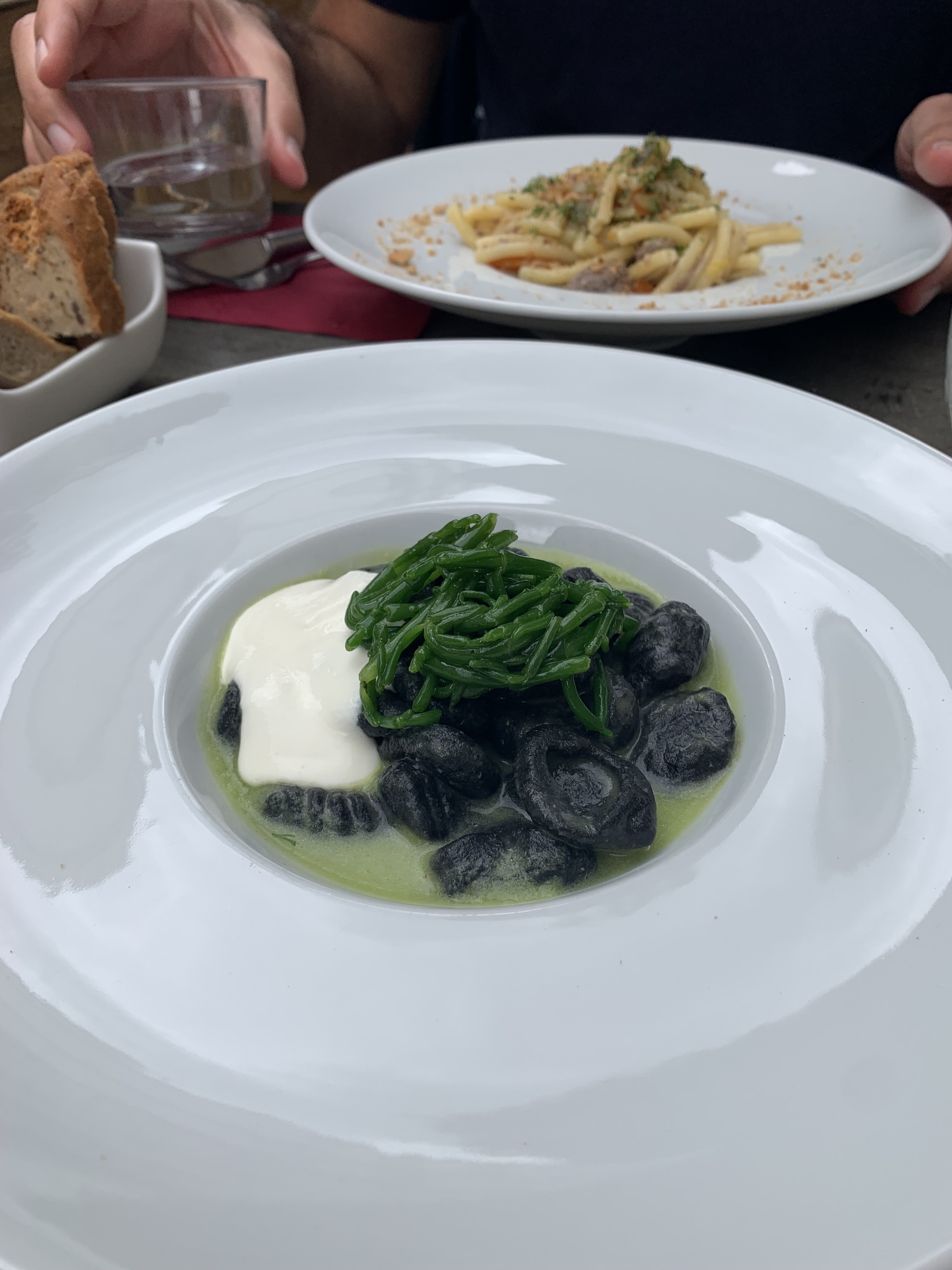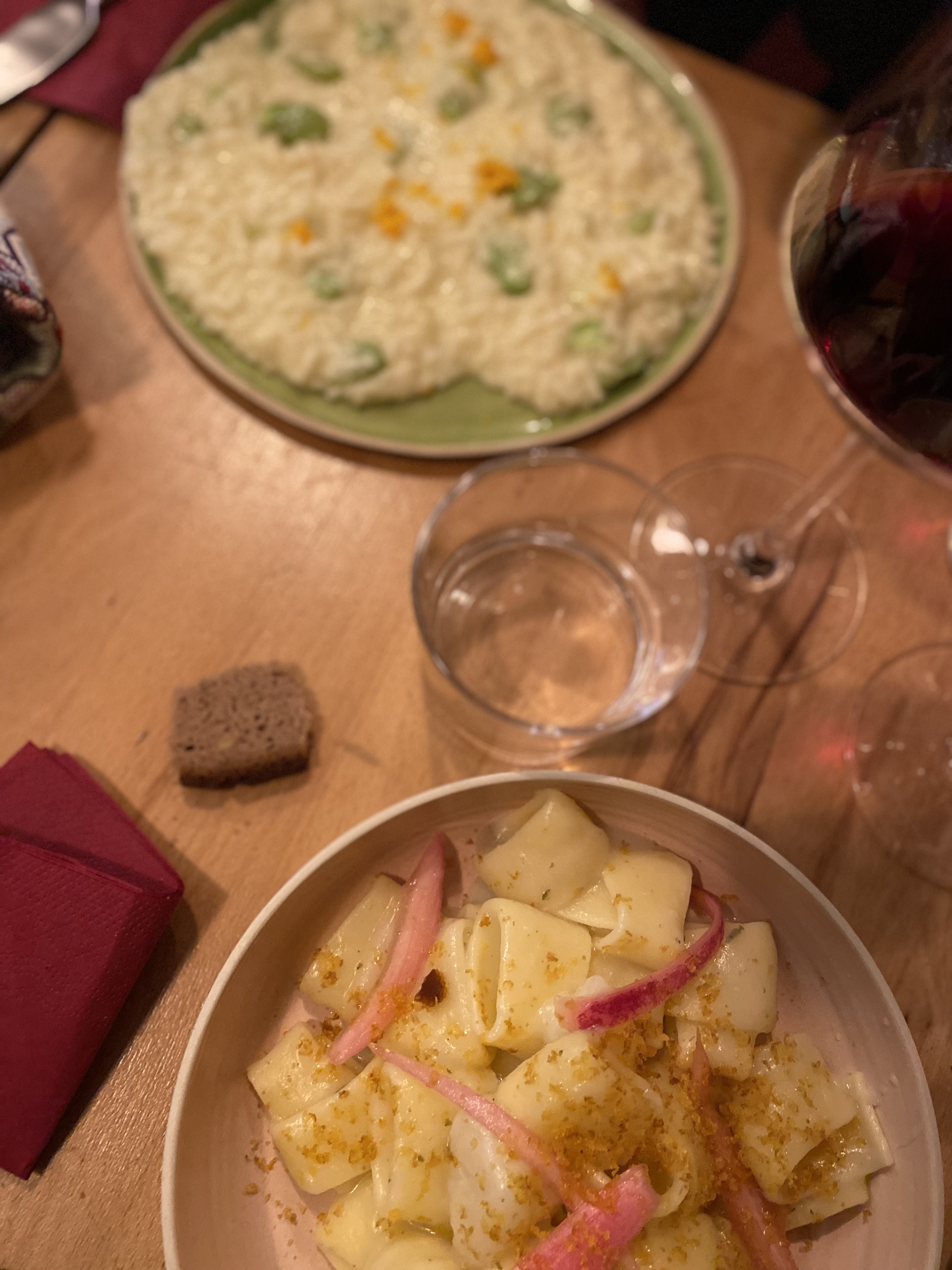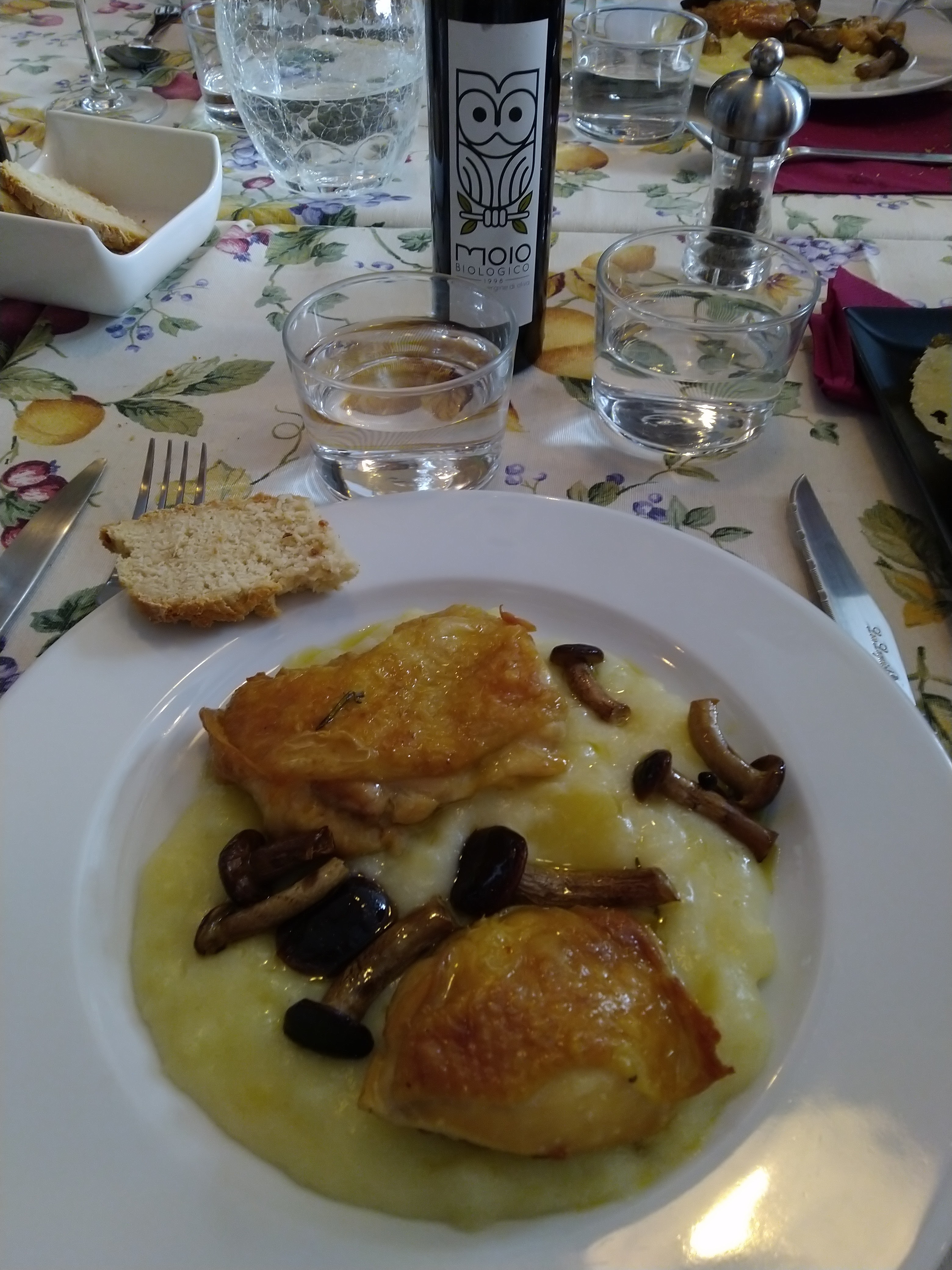 Joli moment, et top cuisine ! Nous nous sommes régalés avec une reco de vin rouge italien doux qui se mariait avec nos plats. Petit plus : le pain sans gluten fait maison. Grazie ;)