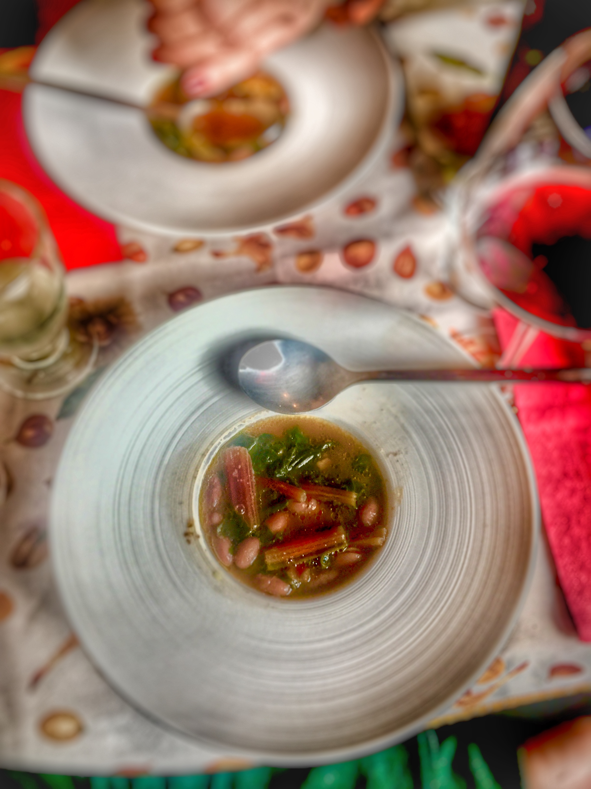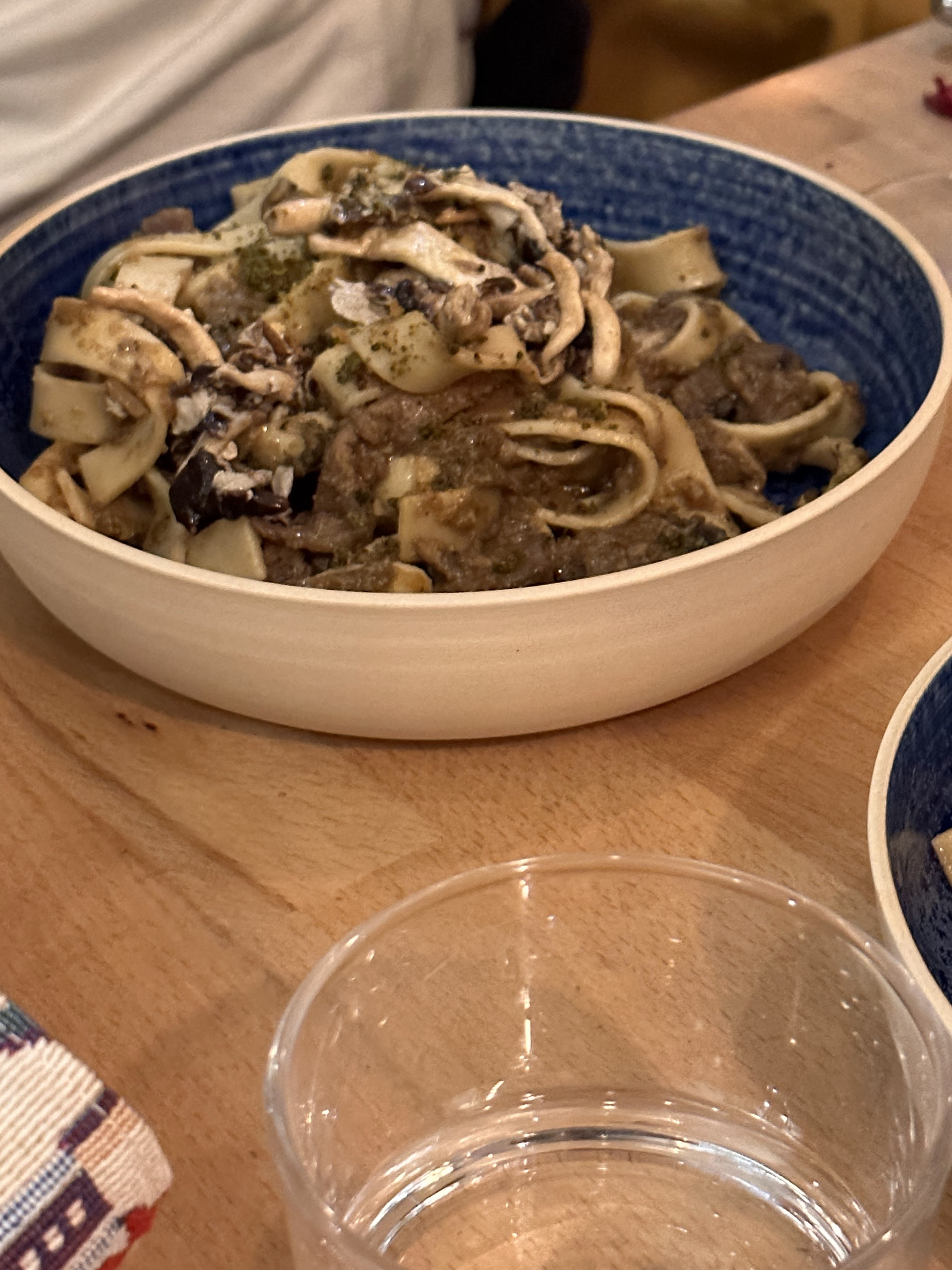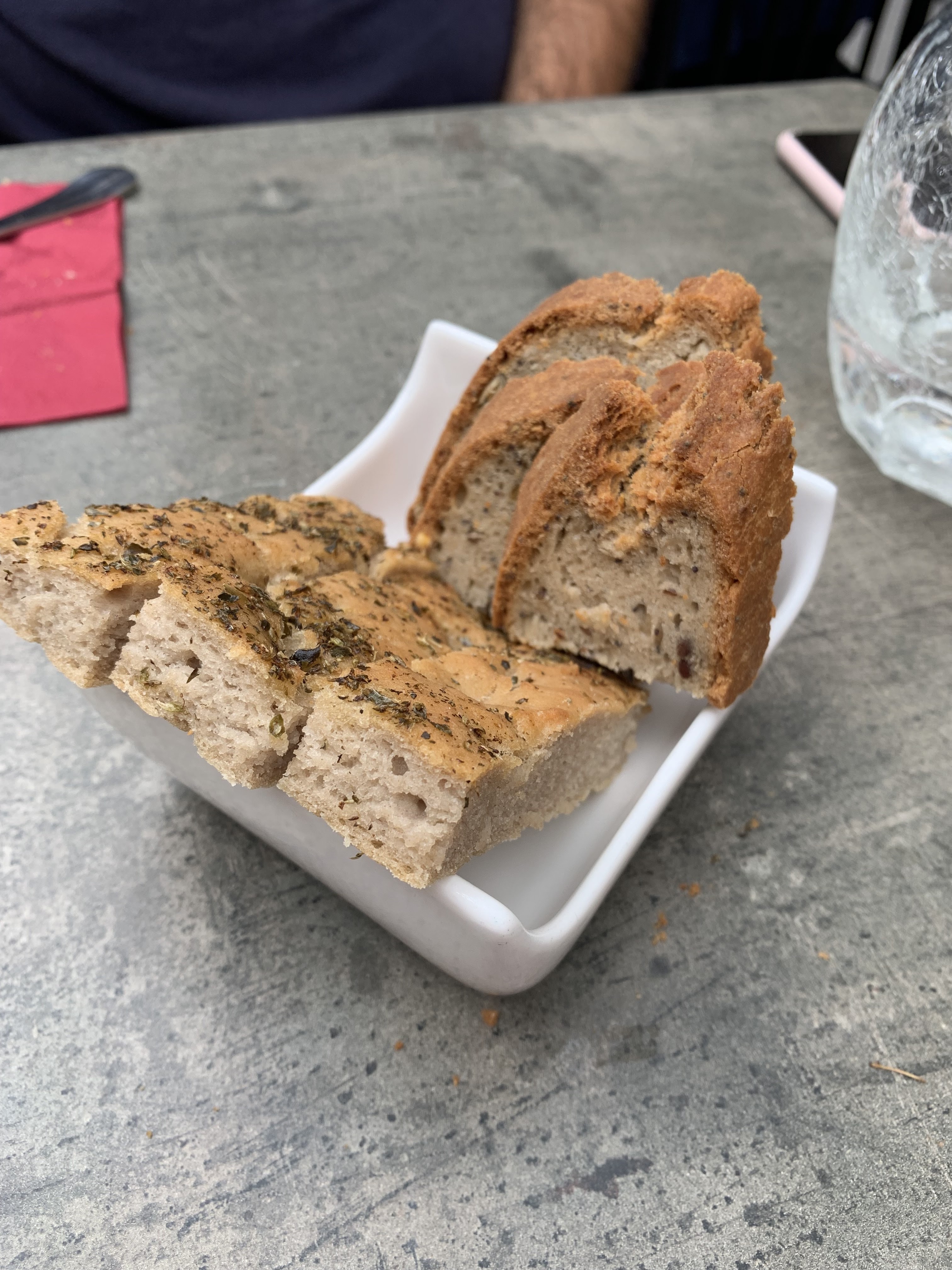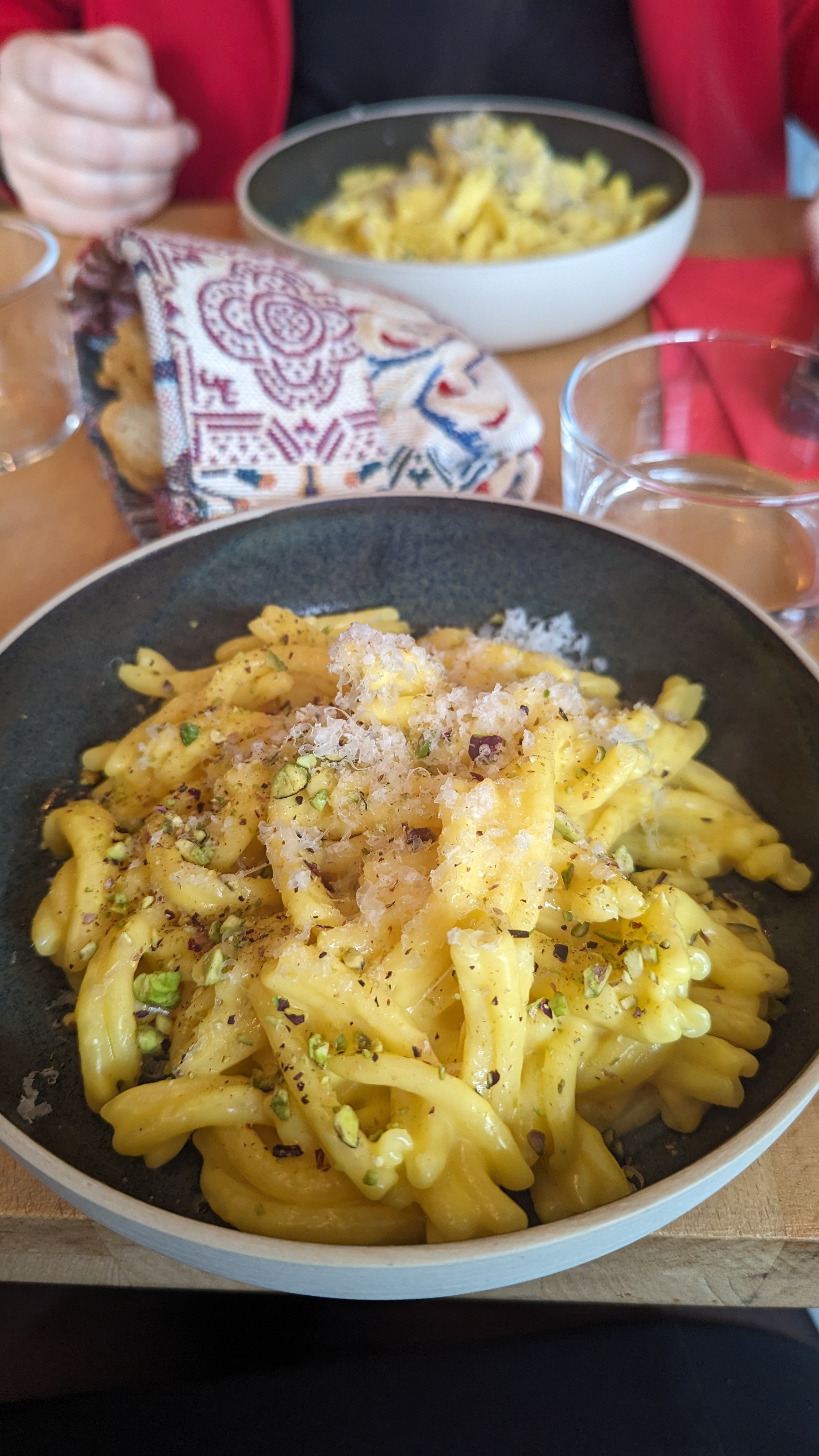 Joli moment, et top cuisine ! Nous nous sommes régalés avec une reco de vin rouge italien doux qui se mariait avec nos plats. Petit plus : le pain sans gluten fait maison. Grazie ;)