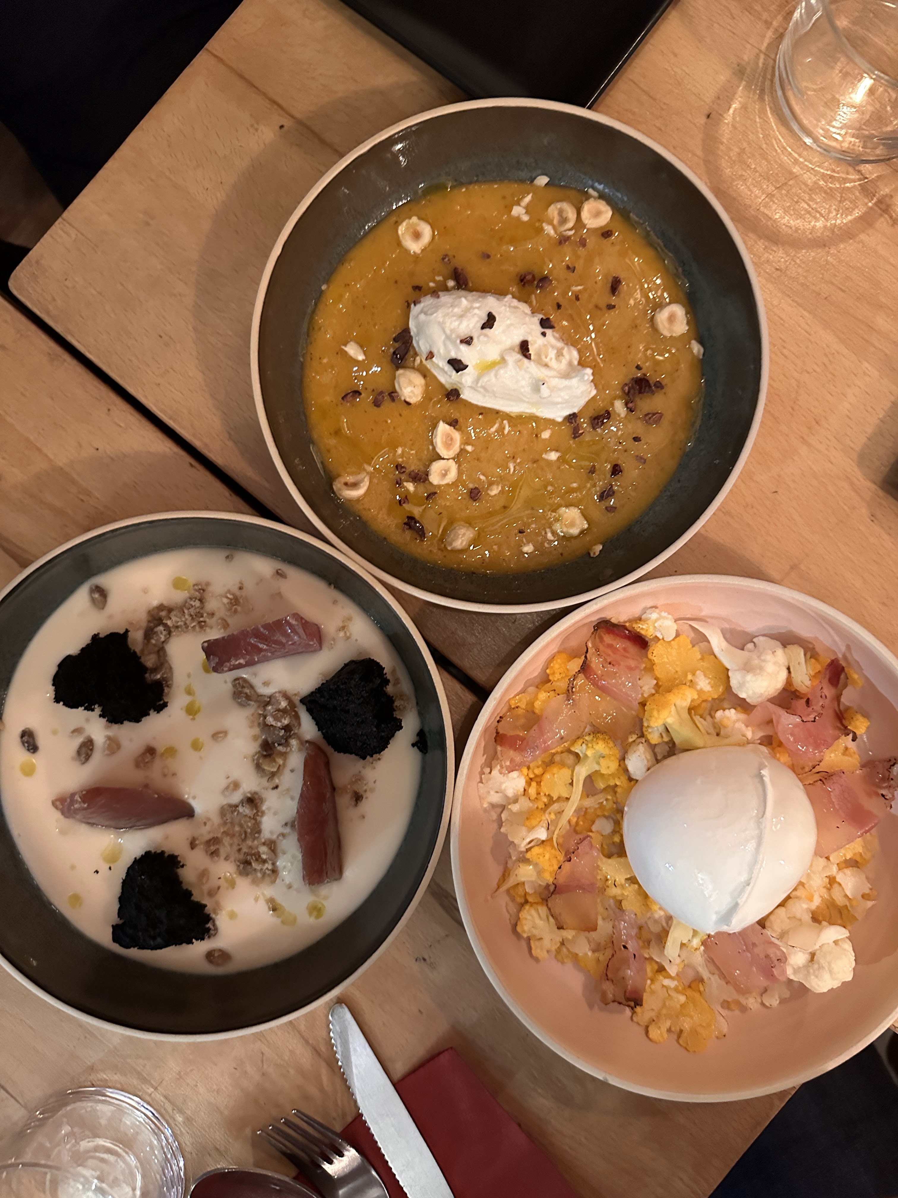 Très bonne réalisation des plats, la carte changeant chaque semaine avec des produits frais et de saison. Des associations originales mais à mon sens pas complètement abouties - il manque un petit quelque chose pour rendre les plats parfaits. Pâtes très al dente (on adore), gnocchi qui manquent toutefois un peu de fondant. Tiramisu très bon, mais très sucré. Le pain fait maison est divin ! Personnel sympathique et service efficace. Les prix sont relativement élevés (pas de formule le midi) mais reflètent le quartier.